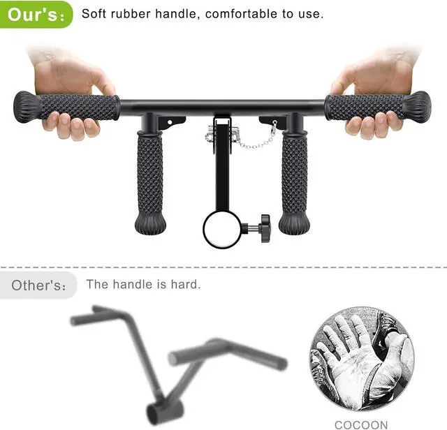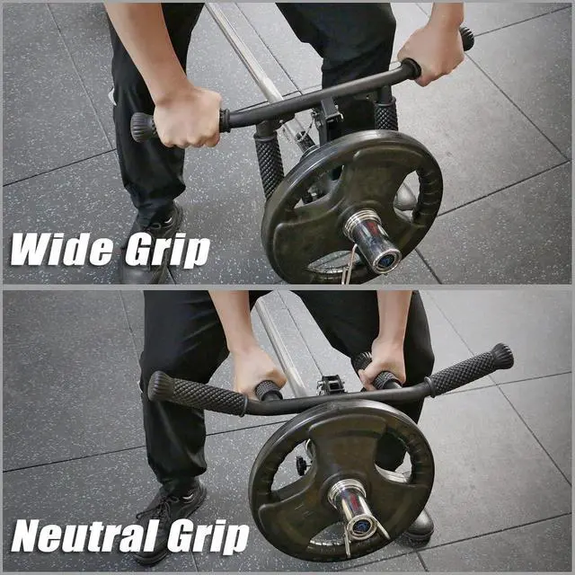 Comfortable Non-Slip Rubber Handle GripThe T bar is made of high quality steel, and the non-slip rubber handle diameter is 1.5 inches, suitable for most people hand grips, more comfortable to use. Even in the winter exercise, using the rubber grip will not feel very cold for a better workout experience