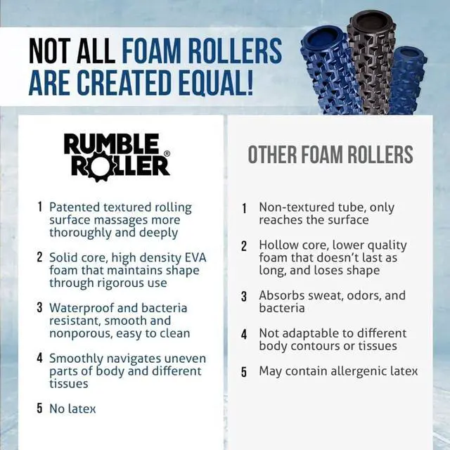 The deep massage of the RumbleRoller not only relieves sore muscles, it digs into connective tissue and fascia to help circulate blood and oxygen for pain relief and faster muscle recovery