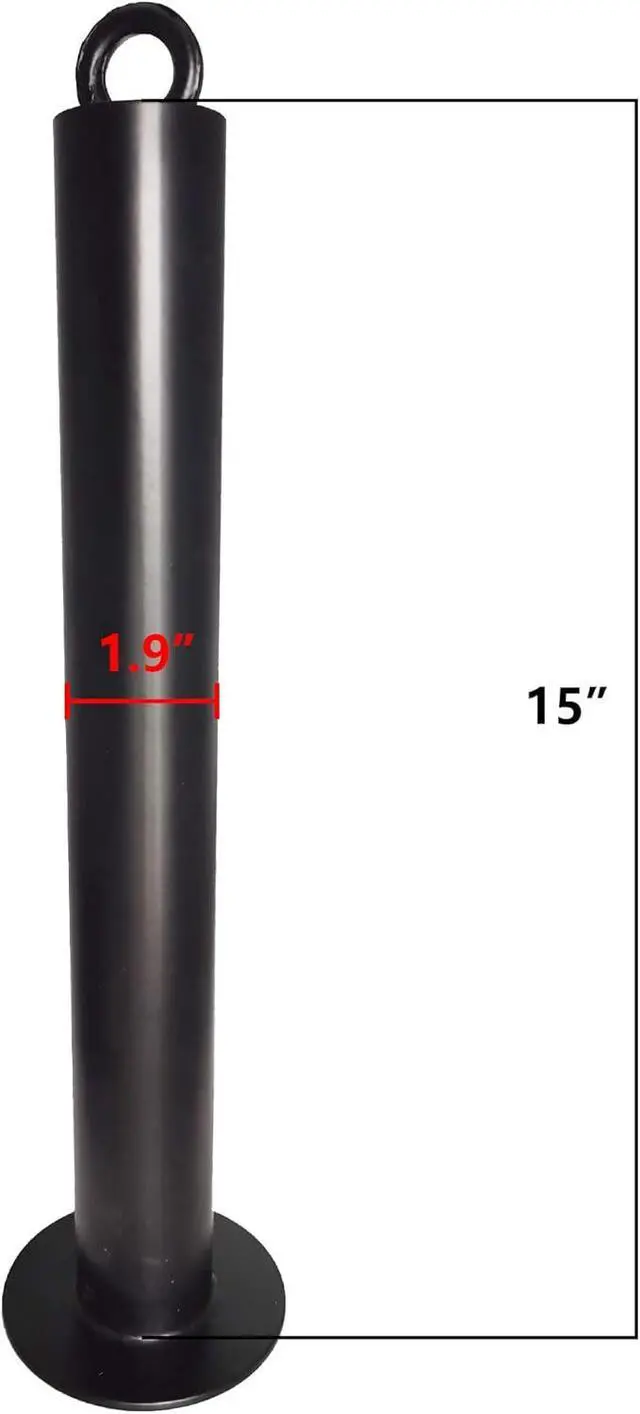 Size: 15 inch height, 1.9 inch diameter, 3.9 inch diameter of the bottom plate, which is suitable for Olympic Weight Plates of 2".