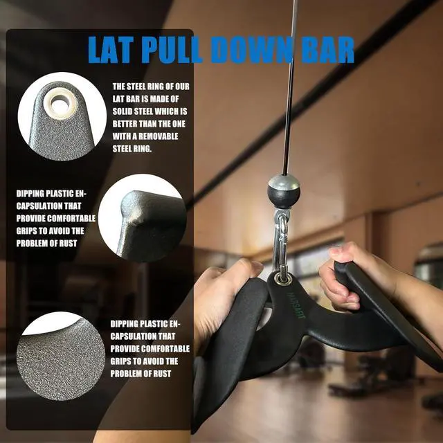 Reliable Quality: Consisting of thick and high-quality inner steel plate and rubber skin, our Lat pull down bar is more sturdy and longlife. Our lat pull down bar will not bend, crack or break the skin even if after a long time of use