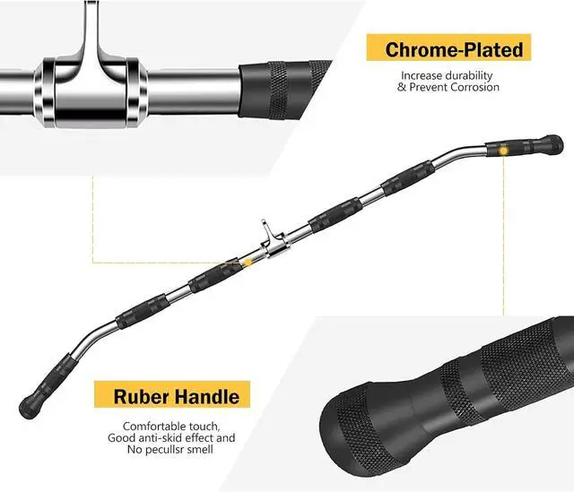 Anti-Slip Handle: There are 6 rubber Non-slip Handles on the Lat pulldown bar, provides sevral work modes; The environment friendly textured rubber provides ergonomic and firm grip during your regular routine, as well as to increase comfort and safety.