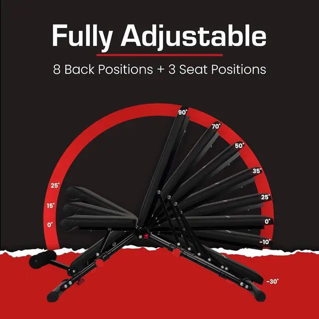 Versatility: Backrest Adjusts To 8 Different Angles Incline/Flat/Decline (90°, 70°, 50°, 35°, 125°, 0°, -10°, -30°)
