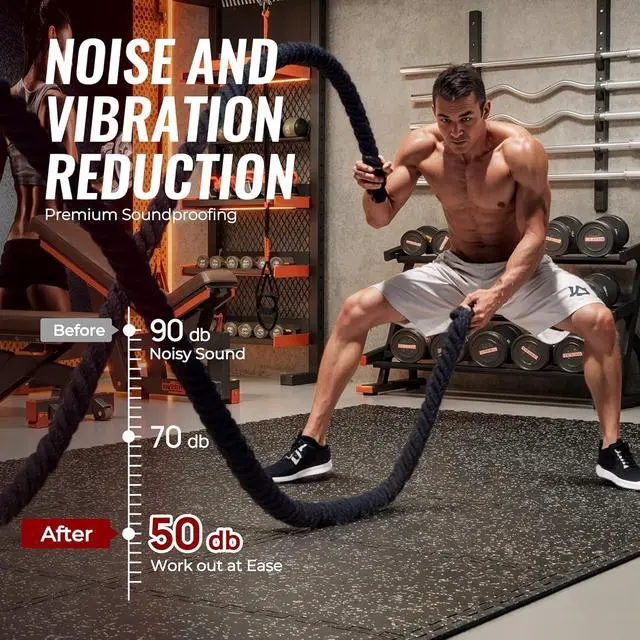 0.79 Thicken Floor MatsUpgrade to 0.79 ' ' thickness! More durable and tougher. A high-density EVA foam base combined with a sturdy EPDM rubber top. This construction can support heavy exercise equipment, ensuring it wont tear easily due to weight or vigorous movements, guaranteeing long-lasting durability. SUPERJARE
