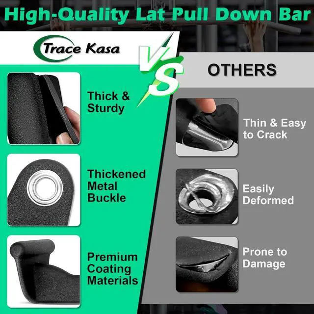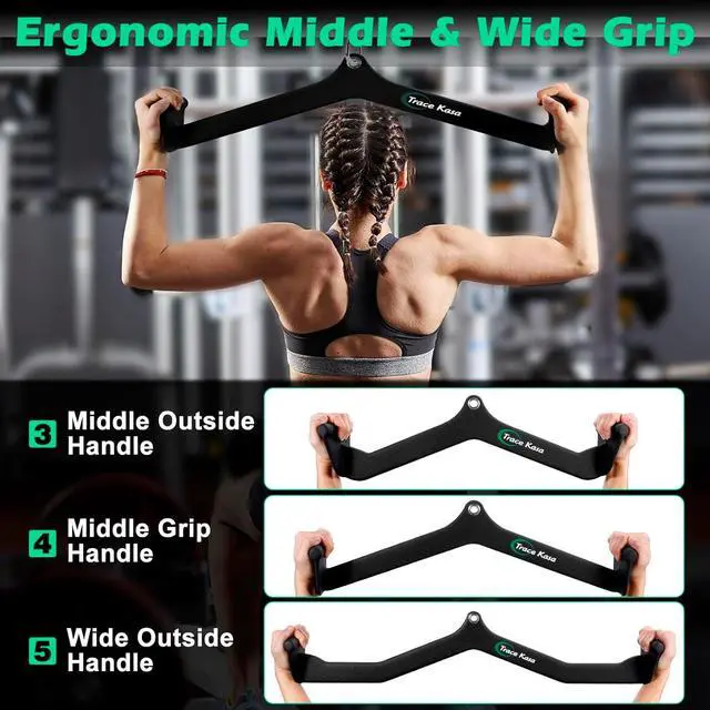 Reliable Quality Grips: At home gym must haves workout accessories is this lat pull down attachment set, constructed of heavy duty steel and premium coating rubber, makes the close grip lat pull down handle thick, sturdy and feeling good to touch. The lat pulldown bar also has thickened metal buckle designed, will not easy to deform. Our products lat bar will give you a excellent and safe workout experience!