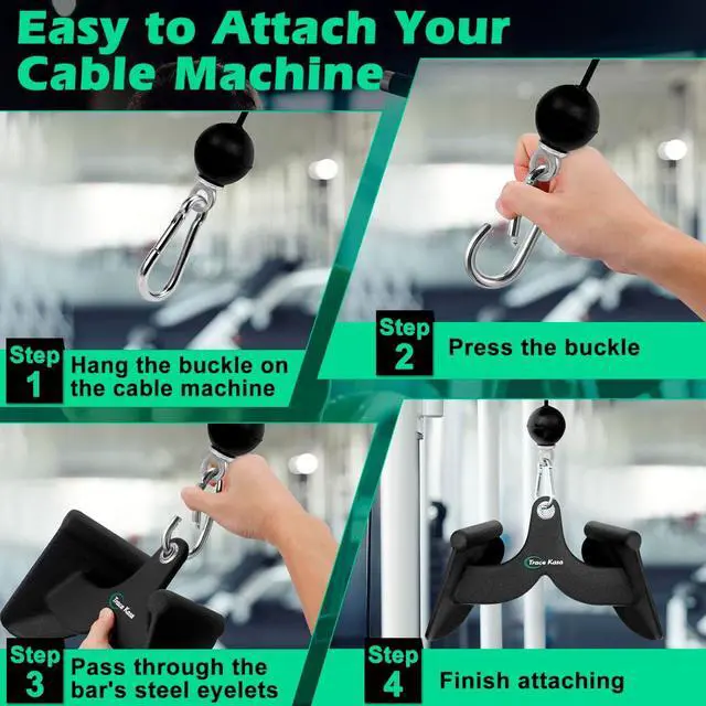 Easy to Attach: Compared to others, our gym attachments for cable machine have snap hook carabiners which is 4 inches long, you can use it easily connect to any cable machine. Dont worry about getting stuck when you prepare to use cable attachments for gym. The v bar attachment can be used to many back workout equipment machine, such as lat pull down machine, cable machines, home gym machine, rowing machines, smith machines and so on.