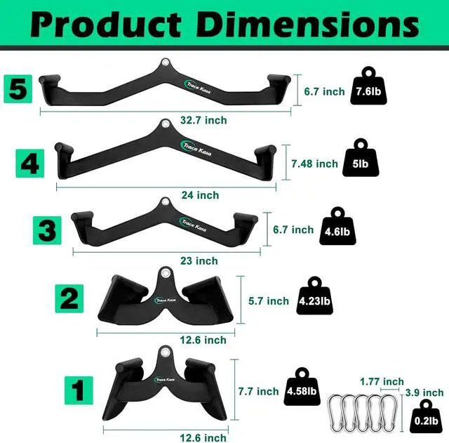 Multi Model Cable Machine Attachment: Our lat pulldown machines set has 5 models to choose from, No. 1 is narrow gym handles for cables, No. 2 is narrow outside handles, No. 3 and No. 4 are middle mag grip lat pull down bar, last are the combinations of No. 1&4. The home gym equipment set also has other cable machine accessories, snap hook carabiners. This workout equipment home gym is your ideal choice.