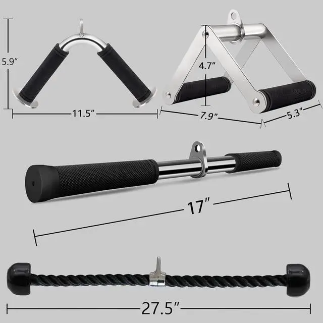 Package Includes - 1 * V-Shaped Bar +1 * Straight Rotaing Bar + 1 * V Handle with Rotation + 1* Nylon Braided Tricep Rope