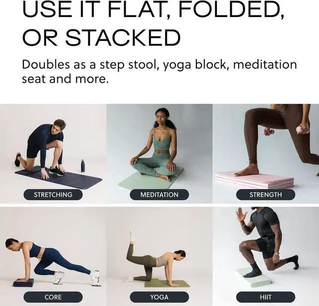 YOGA MAT REIMAGINED: The original Stakt foldable yoga mat moves with your practice. It is a 2-in-1 exercise mat that folds to add height and support. At twice the thickness of a standard yoga mat, it helps cushion joints and improve comfort. The foldable design allows it to work as a yoga block, step, meditation seat, or support during Pilates and workouts.