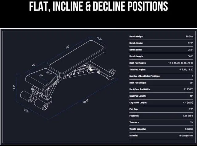 Versatile FID Platform: Designed with flat, incline, and decline positions, this adjustable bench offers maximum training variety. Target your chest, core, shoulders, and arms with precise angles for strength training and conditioning.