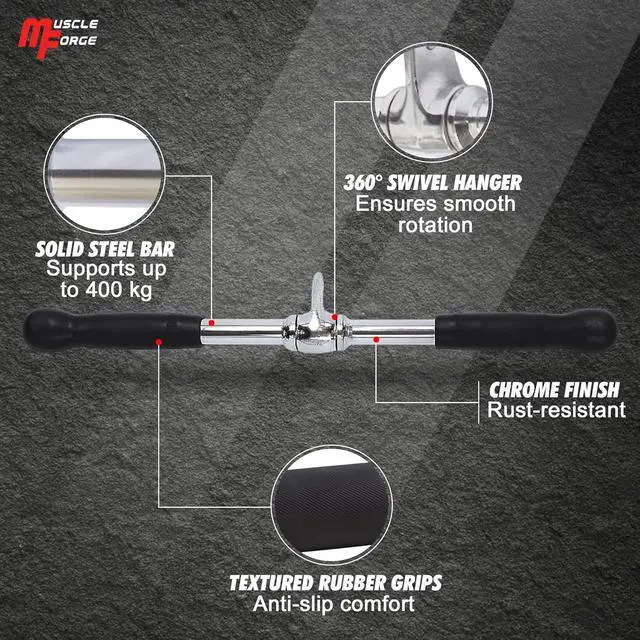 ISOLATION & POWER MOVEMENTS: This straight bar cable attachment supports a wide variety of upper body training. Great for triceps, shoulders, back and chest isolation.