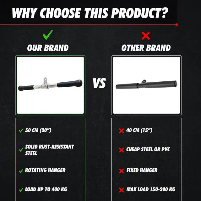 HEAVY-DUTY STEEL CONSTRUCTION: Crafted from solid steel with corrosion-resistant chrome, this tricep bar is built to withstand high loads and daily strength training.