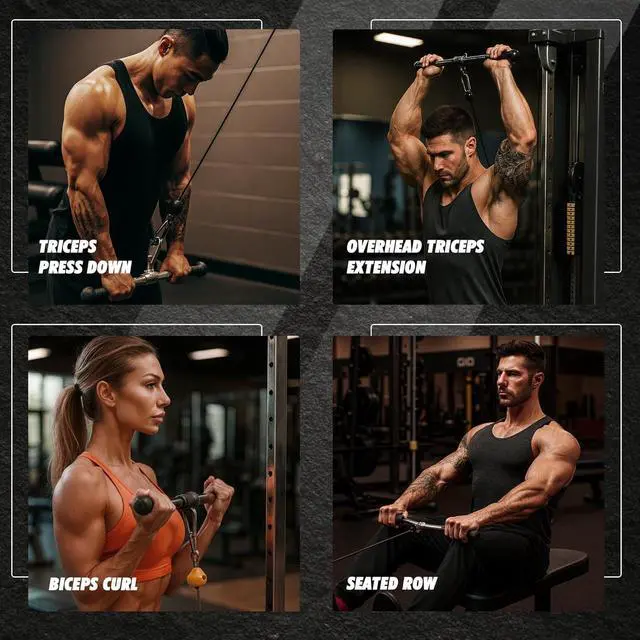 ROTATING EYELET FOR COMFORT: The 360° rotating eyelet reduces wrist tension and supports full range of motion during tricep pulldown and bicep curl exercises.