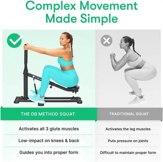 TRAINING: Activates glutes more effectively than traditional squats while reducing strain on knees and back; ideal for deep squat workouts at home or in small spaces