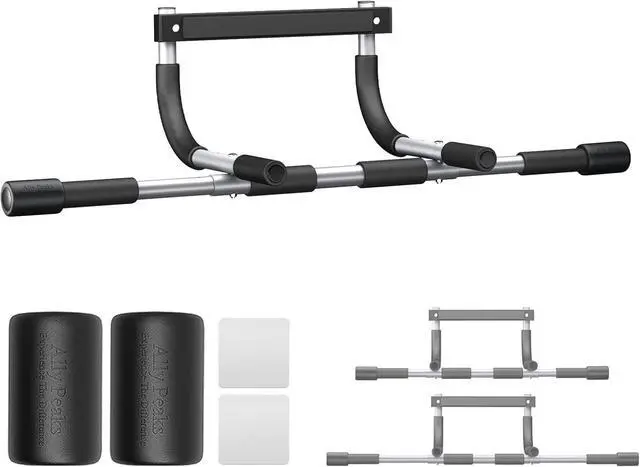 HEAVY DUTY CONSTRUCTIONHOLD UP TO 500 LBS: The pullup bar make from 1.7 mm thickened chrome steel. Original no break in the middle, double steel pipe superposition construction. These features permit the 500lb weight limit. High quality lock nuts help prevent loosening of the assembly. The fine powder coating prevent rust and corrosion. High fiber foam handles provide a comfortable grip, anti-slip and wear resistance.