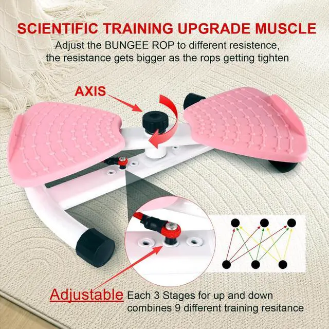 [9 Adjustment of Resistance] Change training, intensity upgrade, the resistance is changed by adjusting the distance of the bolts under the pedal, up and down 3 gears, 9 combination modes, adjust the elastic rope according to resistance needs, the tighter the elastic rope, the greater the resistance, adapt to various training stages