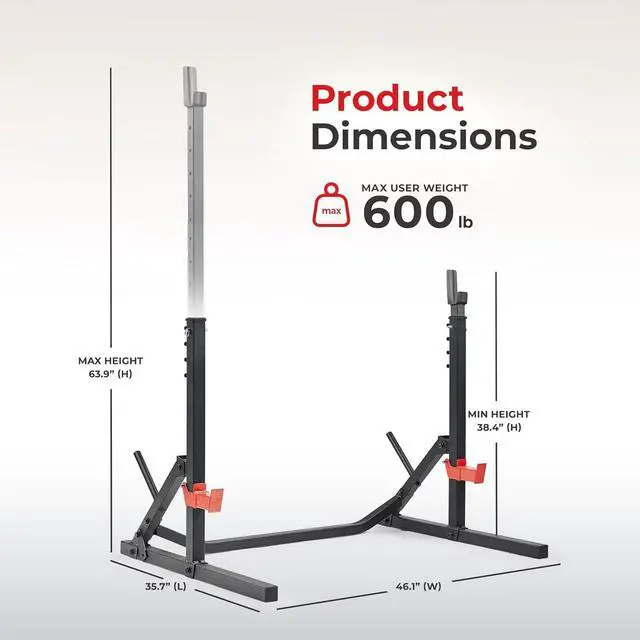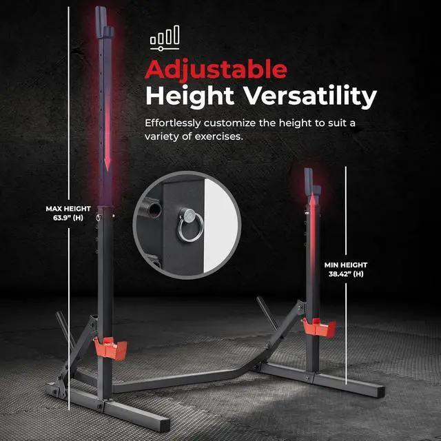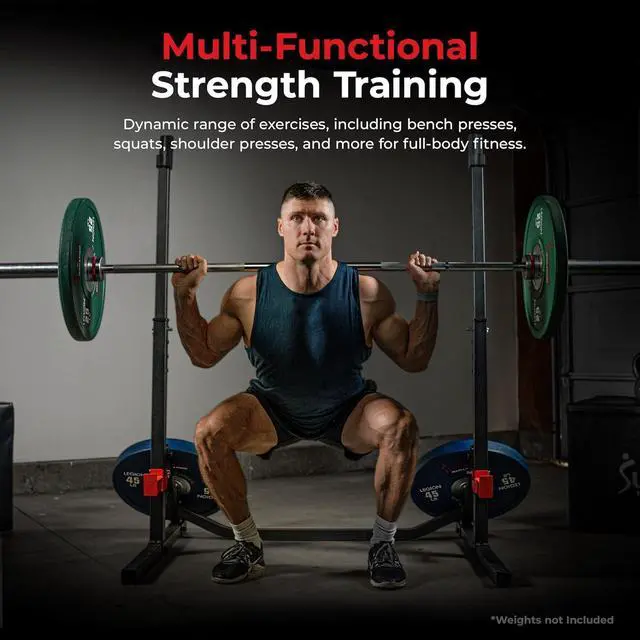 ENHANCED SAFETY AND SUPPORTOur spotter arms provide top-to-bottom protection, offering a secure safety net during exercises, from the bench press to deadlifts. Push your limits with confidence, you have reliable backup to catch the weight.