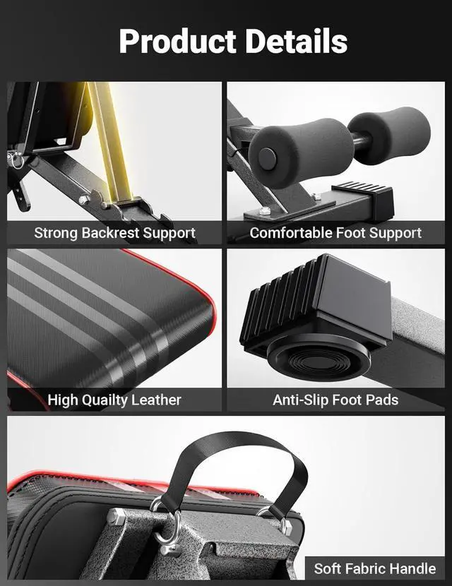 Versatile WorkoutYou can adjust it 60 different ways for a more versatile workout and do a variety of bench workouts that target your back, legs, or chestall from just one piece of Yoleo workout bench