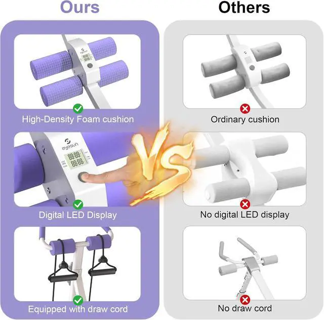 Why us? The EYESUN AB workout machine is easy to assemble and features a compact design perfect for home gyms with limited space. Its thick sponge padding on the knees and elbows ensures enhanced comfort during workouts, while high-quality silent rollers provide a smooth, quiet glide to keep you motivated throughout your fitness routine.