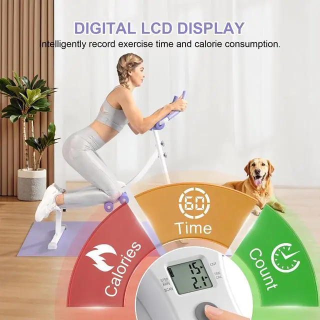 Track Your Progress Effortlessly: Stay informed about your workout performance with the built-in LCD display. The abs workout equipment shows essential data such as exercise counts, time, and calories burned, helping you monitor your progress and adjust your fitness plan as needed.
