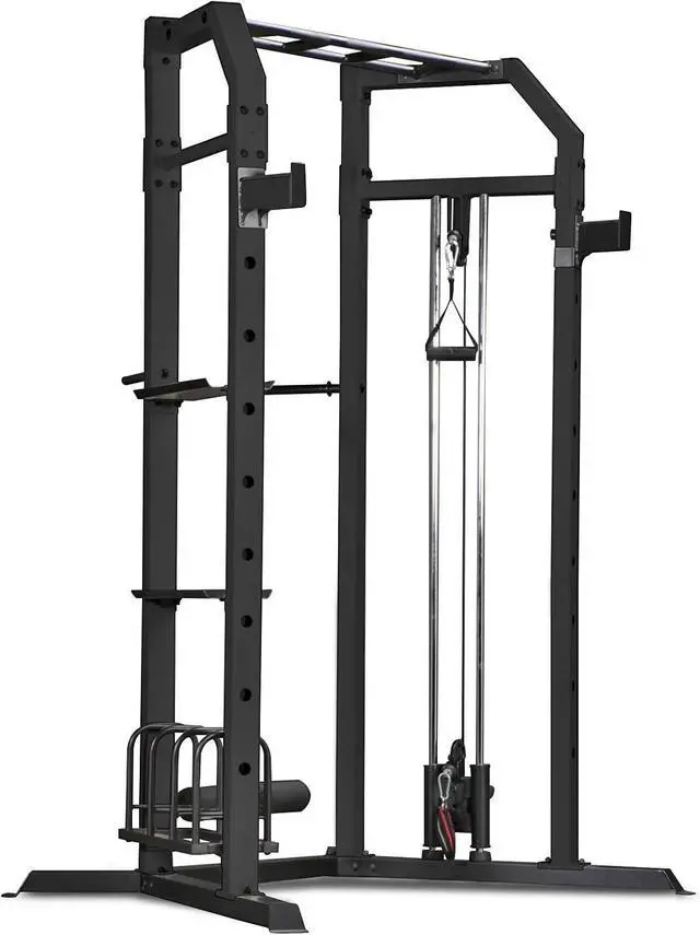 Multi-Exercise Stations: This versatile cage includes a multi-grip pull-up station, a foam-padded dip bar for chest and tricep development, a high pulley for shoulder exercises, and a low pulley for back and leg workouts. The various stations ensure you can target multiple muscle groups effectively in one machine.
