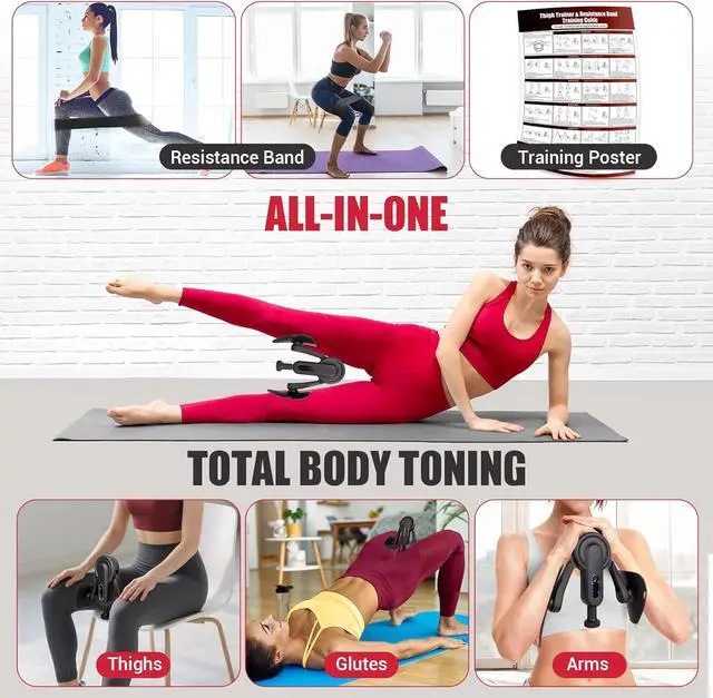 All-In-One Thigh Workout Equipment & Toning System: Expand your horizon with this versatile thigh toner. The kit effectively targets Arms, Glutes, and Back, not just thighs. We included a resistance band and poster to guide your inner thigh exercise equipment routine. Whether doing inner thigh exerciser for women squeezes or arm presses, this set provides a full-body solution in one box.