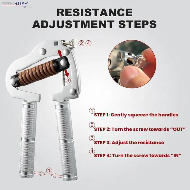 Adjustable Grip Strength Trainer: The NESOHC-LLEW brand offers a grip strength trainer with adjustable resistance, ranging from 55 lbs to 264 lbs, catering to varying fitness levels.