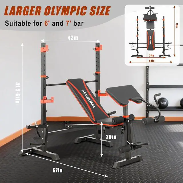 3-Wide AdjustmentsThe backrest has 5 different angles (-10 ° to 80 °) to adapt to different training; The squat rack is designed to match a height of 1.65 - 1.95 meters with 9 levels of height; The 95cm wide rear frame ensures arm movement space and smoother movements.
