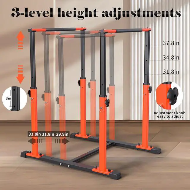 Height adjustmentThe height is 31.8 - 37.8 inches, and you can adjust it according to your own situation. Very suitable for bar exercises, squats, pull-ups, push ups, leg lifts, push ups, etc. It can exercise arms, chest, back, and muscles.