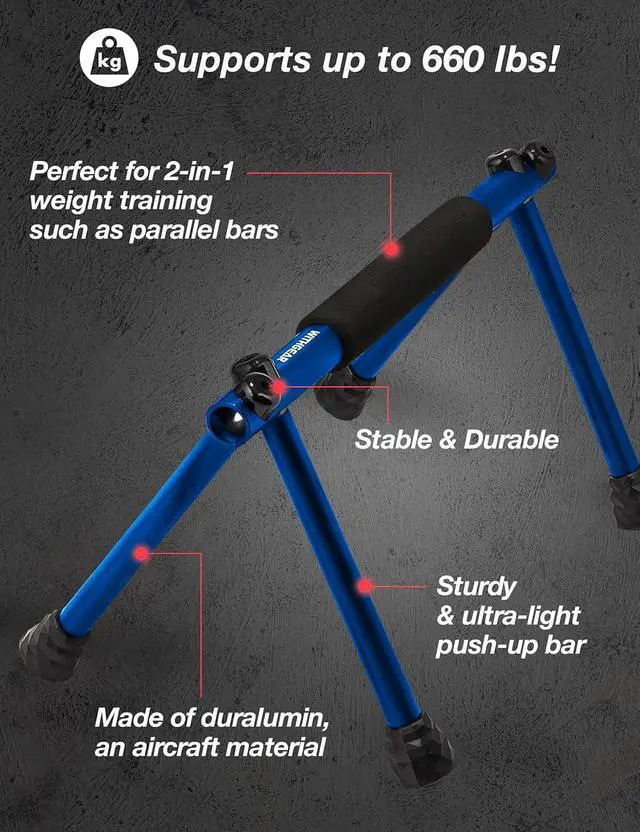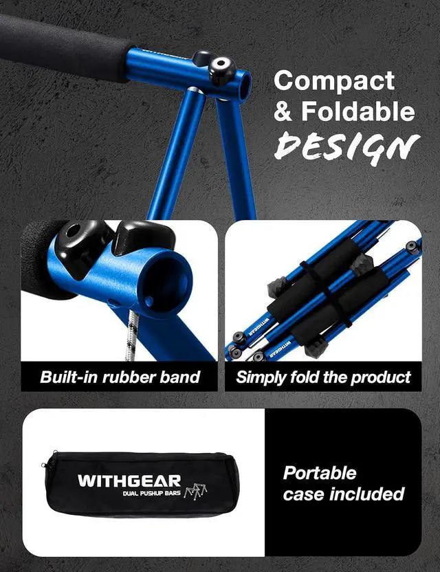 PORTABLE & CONVENIENT. Strengthen your fitness game with this perfect pushup bar' s sleek and lightweight design that is easily portable for on-the-go use and foldable for effortless storage. It will help save space in your home gym while providing reliable and comfortable home gym equipment and workout accessory.