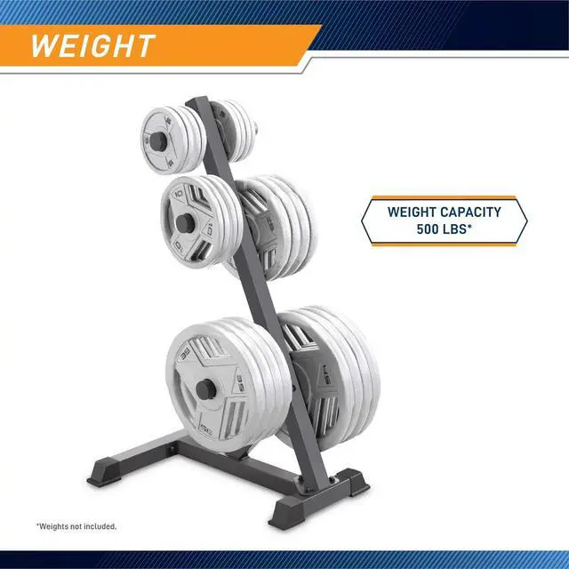 HEAVY-DUTY GYM ORGANIZER Keep your weights secured and organized at all times with this weight plate storage tree. Made from premium heavy gauge, it is resistant to sweat and moisture, helping prevent the buildup of rust over time