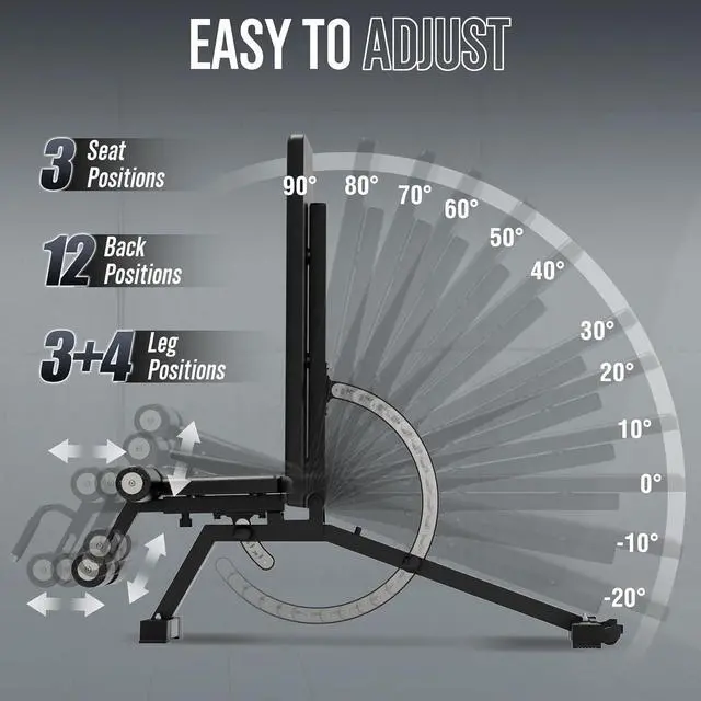 36+ Setting Combos Adjustable Bench - Bench WB00 provides exceptional stability and can easily withstand intense workouts. It features 12 back pad positions and 3 seat position adjustments, allowing for incline, decline, and flat exercises to accommodate most home gym routines.