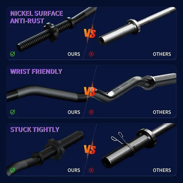 HEAVY-DUTY CHROME STEEL: Our steel rods feature hardened nickel plating for good corrosion and oxidation resistance, Comes with 2 pcs Anti-slips swivel steel clamps to hold 1" weight plates.