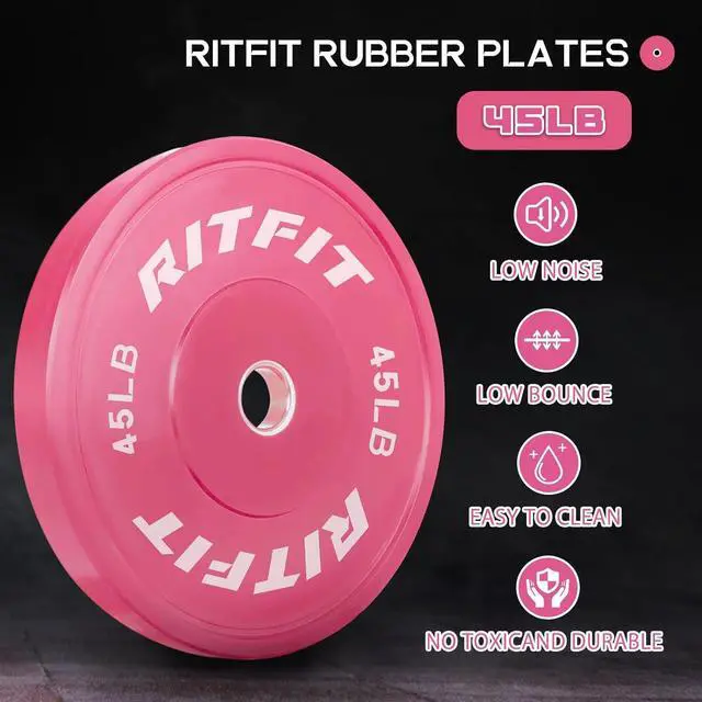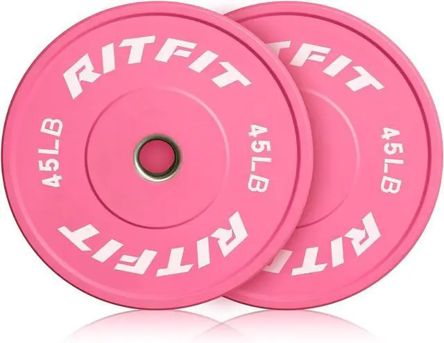 Wide ApplicabilityRitFit pink weight plates are ideal for men and women engaged in weightlifting, strength training, and physical flexibility exercises. These rubber plates support a variety of workout styles. From the familiar bench presses, lunges, and rows, to the less common swings, jerks, and pull-throughs, a set of RitFit Bumper Plates opens up greater potential for your exercise regimen. Ideal for personal training studios, CrossFit gyms, and university fitness centers.