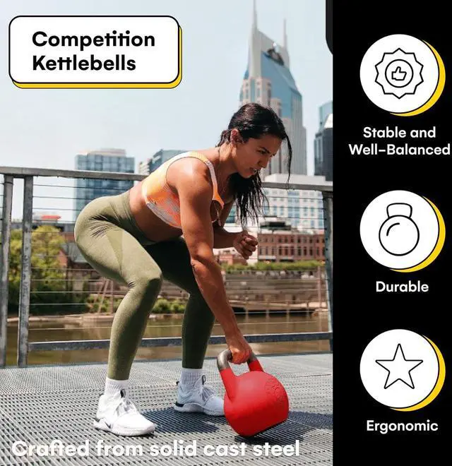PREMIUM-QUALITY CAST STEEL COMPETITION KETTLEBELL: Our hollow core kettlebells are made from a single cast, without fillers. Unlike welded and filled bells, they won' t rattle or shift during exercise.