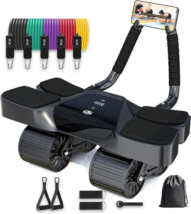 Enhanced Core Workout With LCD Tracking: Upgrade your home gym with this 4-wheel ab roller featuring a built-in LCD screen that tracks time, calories burned, and reps, helping you stay motivated and measure progress with every workout.