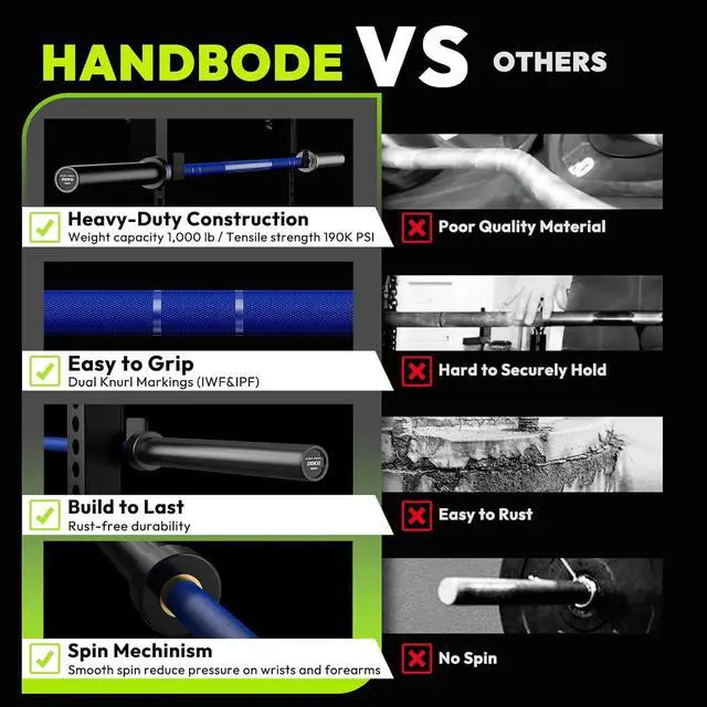 Buy with Confidence from HANDBODE: This is a premium barbell with high-end details, supporting a wide range of exercises. We also offer excellent customer service. Buy with confidence.
