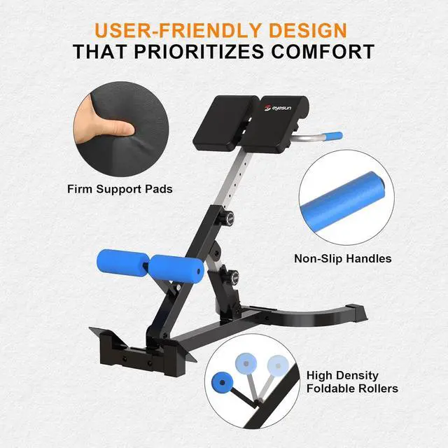 Why EYESUN? The EYESUN Back Extension Roman Chair is easy to assemble and designed with a compact footprintperfect for home gyms with limited space. Thick foam padding provides enhanced comfort during back and core workouts, while high-quality silent rollers ensure a smooth, quiet experience. With clear instructions and all hardware included, you can complete setup in just 30 minutes and jump right into your training routine.