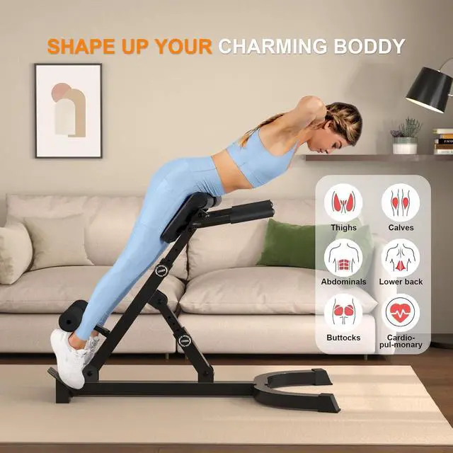• Full-Body Training Powerhouse: This versatile Roman chair targets your glutes, hamstrings, lower back, hips, and corewhile also supporting ab and arm exercises. Its a compact, all-in-one solution for effective full-body workouts at home.