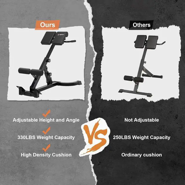 Secure & Adjustable Fit: Designed for users from 5' 2" to 6' 0", this hyperextension bench features customizable height settings, nonslip handlebars for a steady grip, and supports up to 330 lbsdelivering a stable and comfortable workout for all sizes.