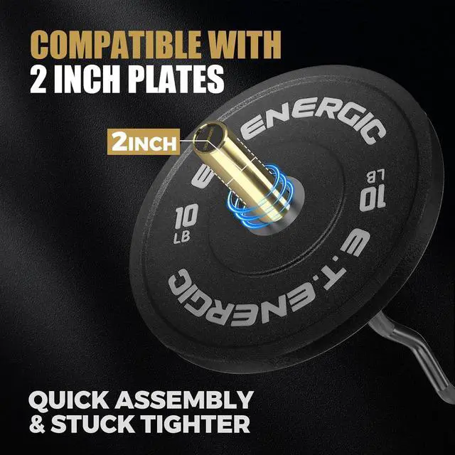 Compatible with 2-Inch Plates: Designed for Olympic weight plates with 2-inch holes. Supports versatile workouts like bench press, skull crushers, hip thrusts, overhead press, and moreperfect for full-body gains