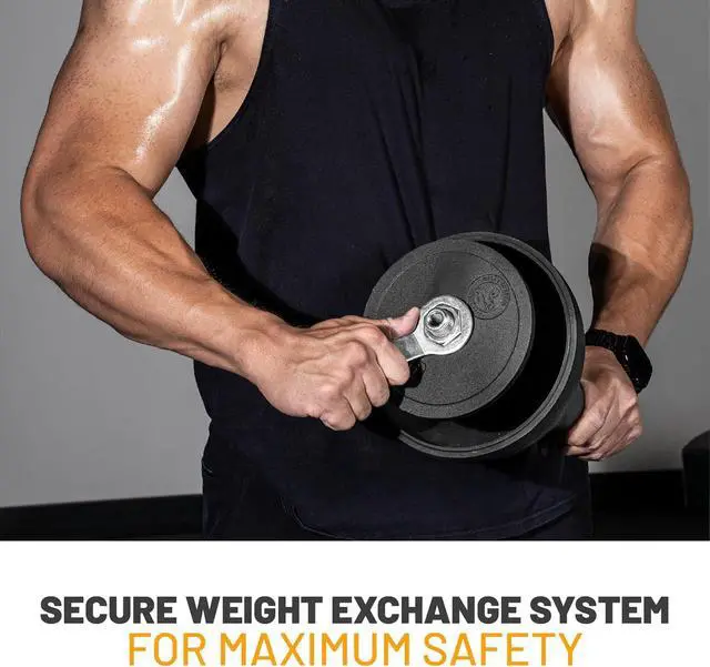 Easy Peasy Secure Plate Swap Use the Allen key to remove the bottom screw, loosen the nut with the wrench, and quickly swap plates. Simple, secure, and ready for your next workout.