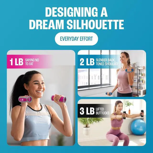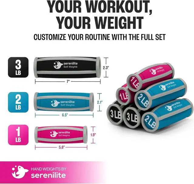 WEIGHT OPTIONS: Set includes three pairs of durable hand weights in 1lb, 2lb, and 3lb increments, providing progressive resistance training options