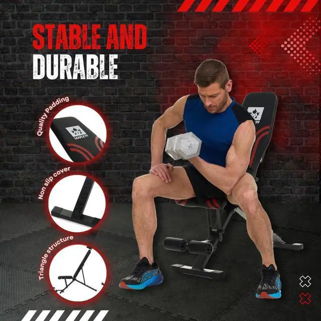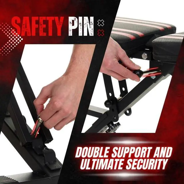 Premier Construction - Commercial-grade steel frame with triple triangle structure ensures rock-solid stability. Rigorously tested to support 660 pounds, providing confident, safe workouts every time. Features non-slip rubber feet and dual locking mechanisms for enhanced security