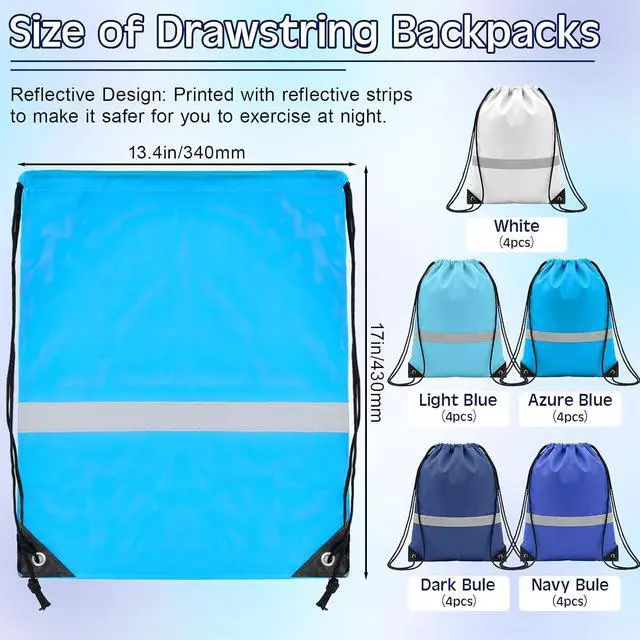 Lightweight and Flexible: the bands for working out are mainly made of quality TEP, stretchy and no smell, not easy to fade or break while exercising; The reflective drawstring bags are mainly made of soft polyester, easy to hold your small items, which can accompany you for a long time