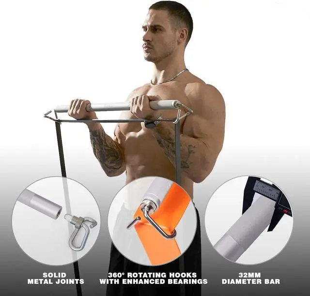 COMPATIBLE WITH VARIOUS RESISTANCE BANDS: Designed to accommodate various widths of resistance bands up to 3.4 ", this fitness bar ensures compatibility with a wide range of exercise equipment, providing versatility in your workouts.
