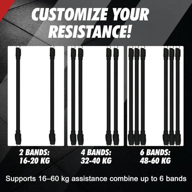 RESISTANCE ADJUSTMENT: With our Pull Up Assist set you can easily adjust the intensity of your workout by selecting the appropriate number of resistance bands (from 2 to 6 bands)