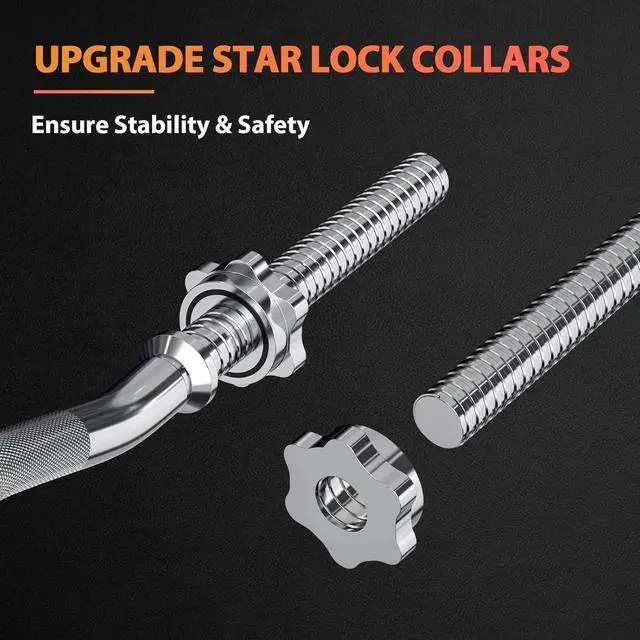 NON-SLIP DIAMOND KNURLS - The diamond-shaped knurls are designed to provide you with excellent grip, slip resistance, and the depth of the knurl is just right, so it won' t be too hard and tear your skin. Comes with 2 steel swivel sockets to hold 1" weight plates.