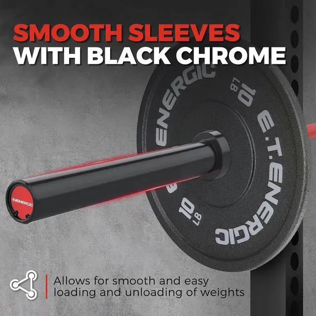 Olympic Weight Plate Compatibility: With 15.7 -inch loadable sleeves, this Olympic weight lifting bar fits all standard 2-inch Olympic plates, making it perfect for power racks, squat racks, benches, and home gym strength training systems.