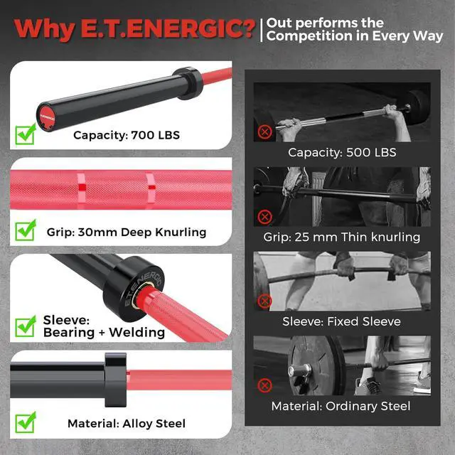 Capacity Heavy-Duty Olympic Barbell: Crafted from heat-treated alloy steel with a durable chrome finish, this 7ft Olympic barbell supports up to 700LB for serious strength training, powerlifting, and weight lifting. Designed for reliable performance in any home gym or commercial gym setup.