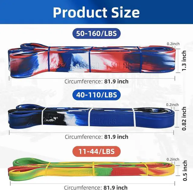 PRECISE DIMENSIONS & RESISTANCE RANGES: Each band features an 81.9 -inch circumference, with three distinct resistance levels available: 11-44 lbs, 40-110 lbs, and 50-160 lbs, matching different fitness intensity requirements from beginner to advanced stages.